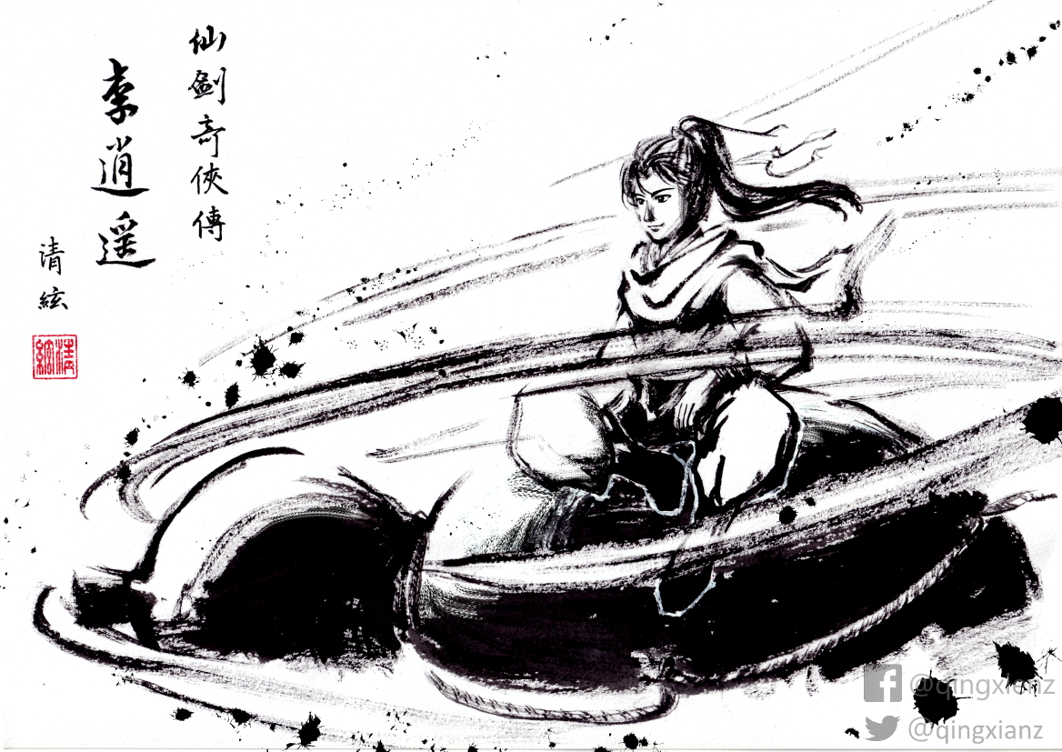 終於想好構圖了,決定拿小人造型畫一個經典畫面,保留仙劍最初的悸動,讓人一看就認出,還可以展現墨繪的特色